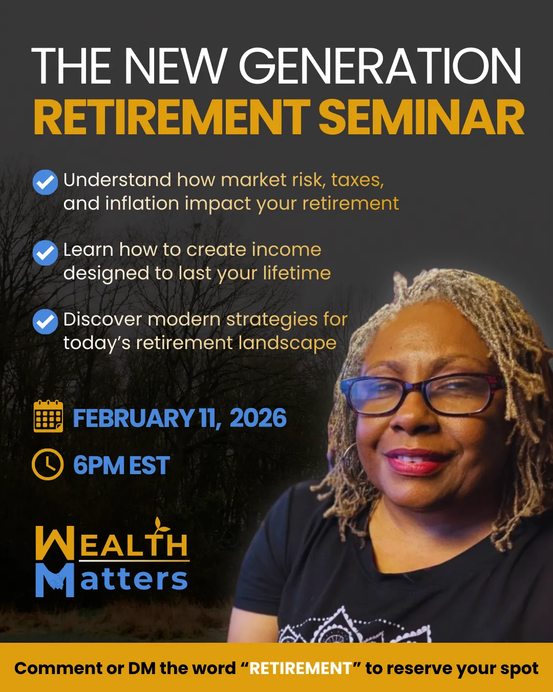 Join this free New Generation Retirement Seminar to learn how today’s retirees turn savings into income, reduce hidden risk, and avoid costly tax and Social Security mistakes.